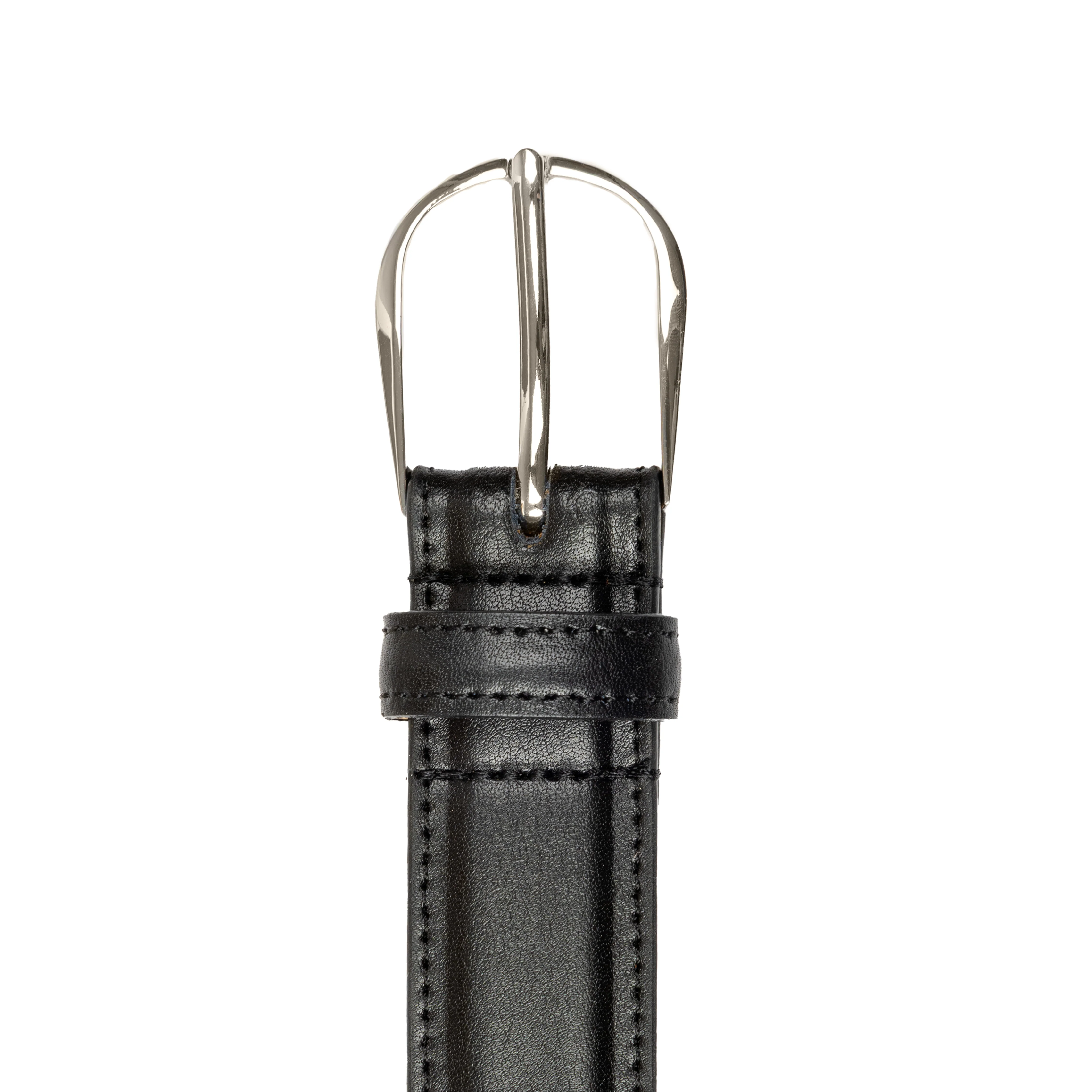 Refine your wardrobe with our classic leather belt from our esteemed Heritage collection. Expertly crafted in Britain, it features a delicately stitched edge for added detail and is lined with contrasting pale nubuck suede for a soft, comfortable feel. The oval buckle, finished in shiny silver, adds easy style, while the single leather keeper keeps your silhouette streamlined. Choose between a high-gloss finish in black or brown, this classic formal belt is a sophisticated staple for smart occasions.