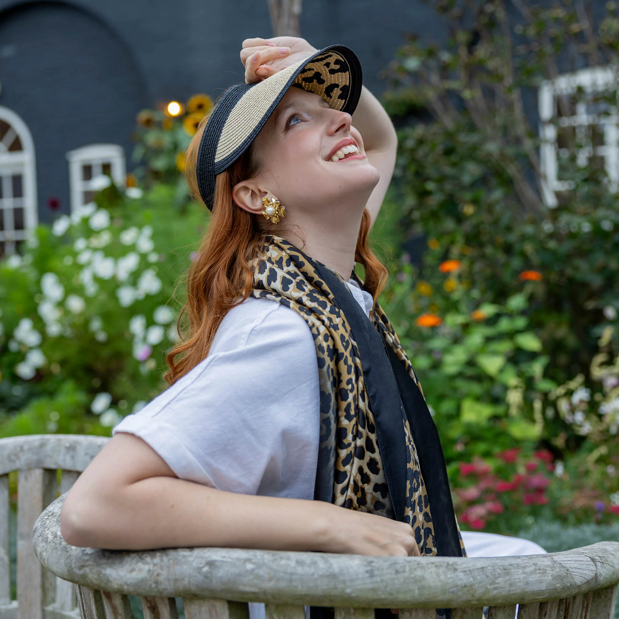 In need of a standout scarf for the season? Look no further. Our women’s lightweight summer scarf is ready for walks on the wild side. Roaring leopard print fades into a black border, combining the hot trends of animal print and ombre for a fierce dash of drama. The silk-like fabric moves with a gentle fluidity, bringing effortless movement however you style it. Striking yet refined, this luxury scarf brings attitude and edge to any fashion-forward wardrobe.