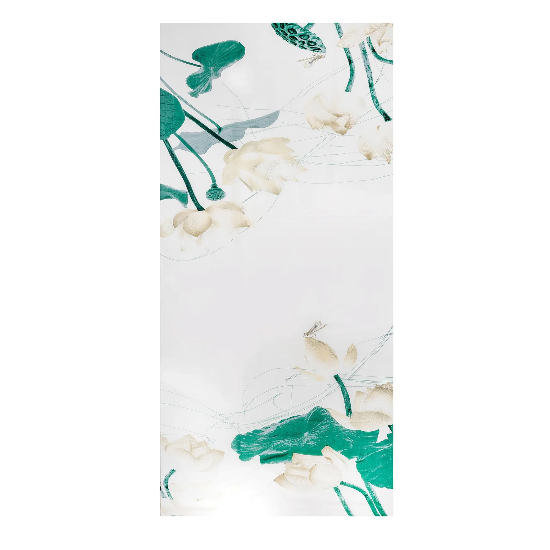 Introduce some stylish serenity to your spring look with our nature-inspired summer scarf. The design evokes the calm tranquility of a natural sanctuary, with a refined floral motif of white blooms, delicate dragonflies and contrasting green lily pads creating a look that is soft yet distinctive. Crafted from a silk-like, lightweight fabric, it can be styled loosely around the shoulders or tied with ease, remaining breathable during the warmer months. A harmonious palette of green, ivory and gold adds instant elegance to any ensemble, making it easy to style from casual to formal settings. A glorious celebration of nature’s intimate beauty.