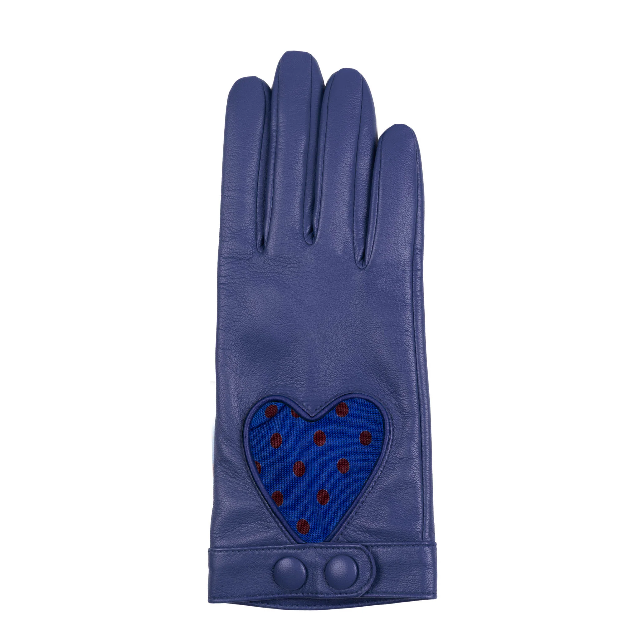 Adorn your hands with a touch of romance. Meet Amora, our luxury leather driving gloves for those who appreciate elegant design and lovely details. A unique heart-shaped cut-out and fine piping draw the eye, while a colourful, spotty silk lining adds comfort and a flourish of charm. Inseam stitching ensures a smooth, close fit, complemented by a matching leather double stud that secures the glove. Sitting just above the wrist, the slim silhouette creates a flattering, contemporary profile. Offered in two dazzling shades, alluring berry softened with ivory or an indulgent royal blue that captures the drama of twilight - these leather gloves make a statement in sophisticated style. Whether you’re drawn to romantic gestures or shopping for a fashion-forward accessory, Amora is crafted to captivate.